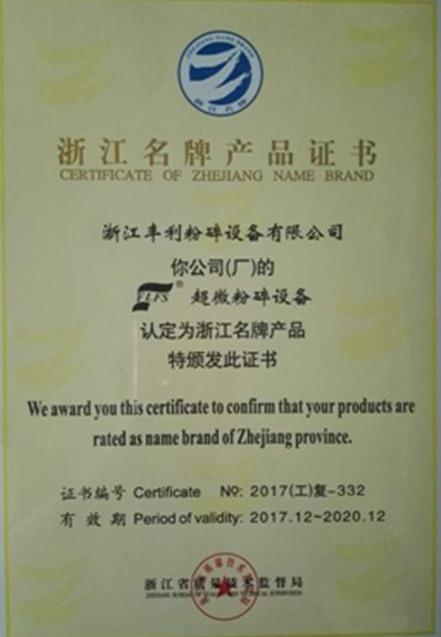 浙江丰利“超微粉碎设备”品牌于2002年首获“浙江名牌产品”称号,实现了我国粉体设备行业名牌零的突破。十六年来,凭着过硬的产品质量和高效的节能效果,热销全国各地,挺进国际市场,成为美国、德国、俄罗斯、日本等多家世界500强企业在中国采购粉体工程设备定点供应商。目前,浙江丰利成为我国粉体设备领域规模大、实力强、品种全,新品多的行业龙头企业,全国颗粒表征与分检及筛网标委会超微粉碎设备工作组秘书长单位,闻名海内外的成套超微粉体设备和绿色环保装备生产基地。